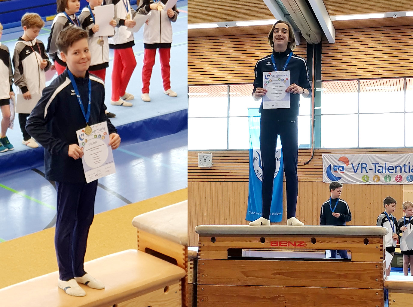 Finn Exner trat für den SKV in der Altersklasse C13 an und Benjamin Cantarutti in der offenen Klasse, das ist Jahrgang 2010 und älter. Beide Jungs hatten in den letzten Wochen intensiv trainiert und sich auf diesen hochklassigen Wettkampf vorbereitet, allerdings war die Vorbereitungszeit knapp, und es gab bis zuletzt noch kleine Unsicherheiten in einigen Übungen. Doch am Wettkampftag waren beide in Topform, wie sich bereits beim Einturnen zeigte. Beide turnten einen hervorragenden Wettkampf und überzeugten die Kampfgerichte mit ihrer Turnkunst. Benjamin gewann den Wettkampf in der offenen Klasse vor drei Turnern vom TV Ingersheim, und an Finn kam nur ein Jahrgangskollege vom MTV Ludwigsburg vorbei, so dass Finn Platz 2 von sieben errang. Beide Jungs qualifizierten sich damit für das Bezirksfinale im Mai.