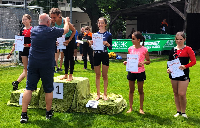 Bären-Cup Annika Hoffmann: bärig Hanna Holter: bärig Hannah Bäuerle: bärig Josephine Arnold: bärig Lenja Bechtel: bärig Leo Pfeil: bärig Liam Nikolaidis: bärig Maya Tannenberger: bärig Mia Schimandel: bärig Johanna Daub: bärenmäßig Lija Slamberger: bärenmäßig Paul Ertl: bärenmäßig Valentina Demaku: bärenmäßigWettkampf G1 - Gemischter Vierkampf weibliche Jugend E 4. Luisa Mayer, 38,65 P. 7. Ida Kühnle, 36,05 P. Wettkampf G2 - Gemischter Vierkampf weibliche Jugend D 3. Jaelyn Arnold, 42,05 P. 4. Lilli Victor, 41,95 P. 6. Emma Kühnle, 39,7 P. Wettkampf G3 - Gemischter Vierkampf weibliche Jugend C 1. Mona Kopf, 52,55 P. 3. Charlotte Cantarutti, 45,0 P. 4. Shania Knoll, 42,3 P. Wettkampf G4 - Gemischter Vierkampf männliche Jugend E 3. Louis Schwägler, 35,75 P. Wettkampf AWD1 - Allgemeiner Dreikampf weibliche Jugend E 8. Marlene Mayer, 33,5 P. 8. Sharron Wachter, 33,5 P. 12. Anila Salijaj, 33,0 P. 17. Mia Pikkemaat, 32,25 P. 18. Anna Victor, 32,2 P. Wettkampf AWD3 - Allgemeiner Dreikampf weibliche Jugend C 1. Milla Brügger, 40,2 P. Wettkampf AWD4 - Allgemeiner Dreikampf männliche Jugend E 5. Purity Ivbensi, 30,95 P. Wettkampf AWD5 - Allgemeiner Dreikampf männliche Jugend D 3. Lennard Reiber, 28,95 P. 4. Don Ivbensi, 28,85 P. 5. Melvyn Gaber, 28,75 P. 6. Damian Biernacki, 26,55 P.