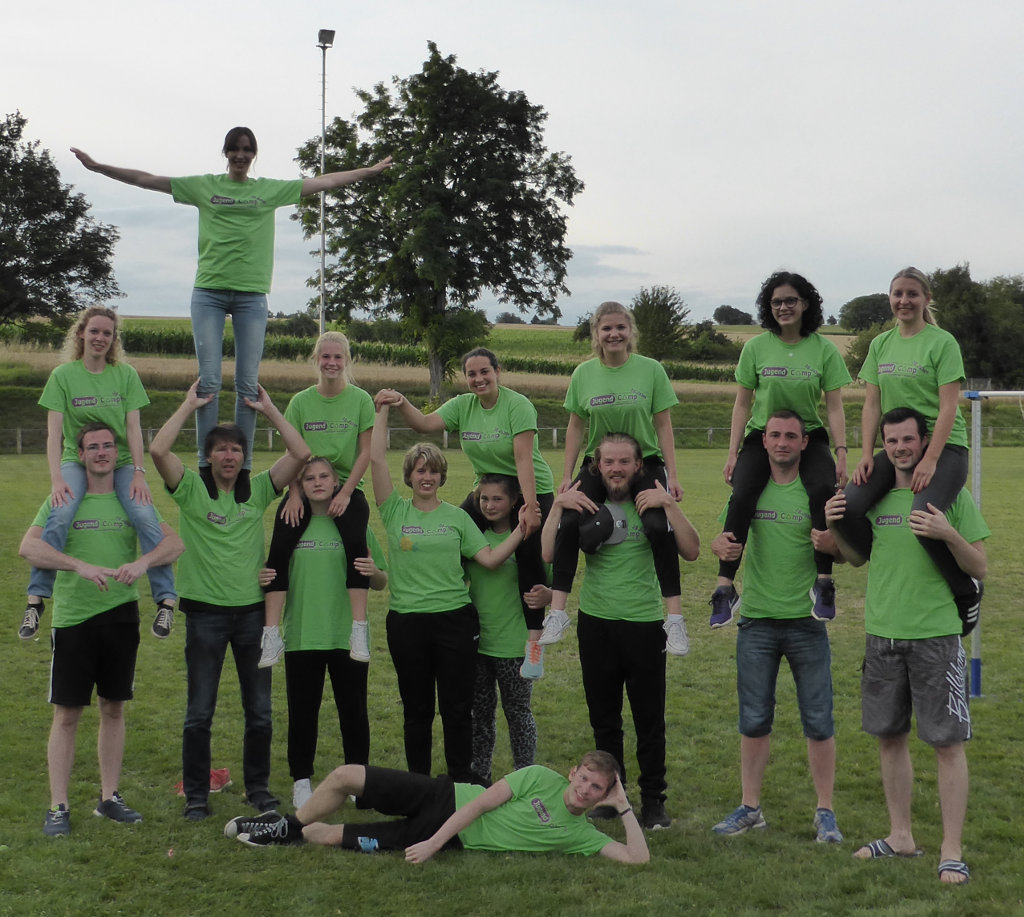(auf Schulter sitzend oder stehend:) Corinna Stengel, Miriam Mödinger, Julia Lelek, Johanna Aichinger, Ellen Wägerle, Tamara Ziegert, Lena Böder;